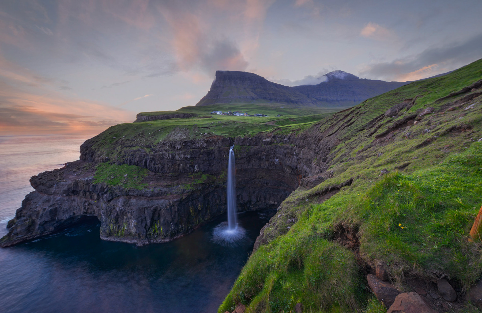 Mulafossur waterfall in Gasadalur Vagar, Faroe Islands