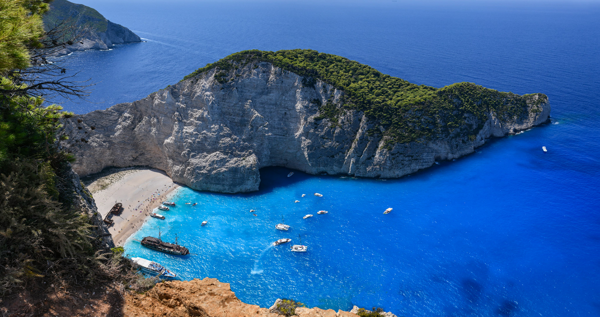 Shipwreck beach or Navagio beach at Zakynthos island in Greece is One of the most beautiful beaches in the Greek islands. Tucked away between 200 meters high white limestone cliffs, accessible only by sea. it is truly a vision.